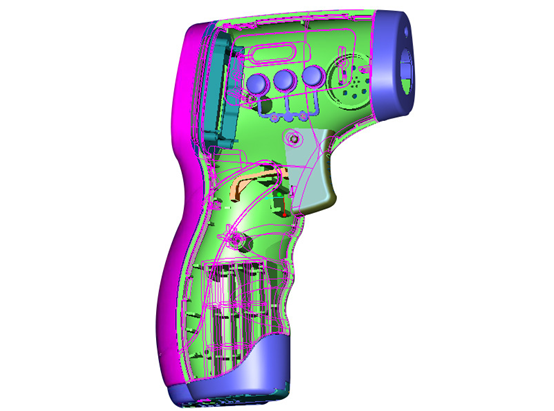 在體溫槍外殼塑膠制品的諸多制造工藝中,最主要的就是注塑成型,而在注塑成型工藝中,最關(guān)鍵、最核心的部分就是體溫槍塑膠模具的設(shè)計(jì)和開(kāi)發(fā)。